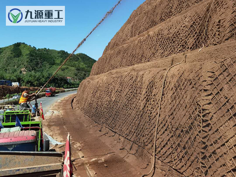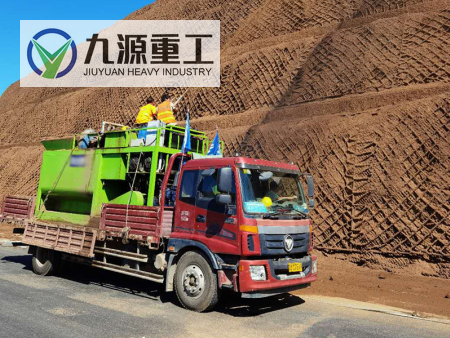噴播機(jī)是應(yīng)用于邊坡綠化的專業(yè)設(shè)備,通過本設(shè)備將土壤基質(zhì)、綠化草籽、保水劑、黏合劑、肥料等,在噴播機(jī)攪拌罐中與水混合成膠狀的漿液,用泥漿泵將其噴播于坡面上。由于漿液中含有保水材料、黏合材料、各種養(yǎng)分,在保證了植物生長(zhǎng)所需的水和其它營養(yǎng)物質(zhì)來源的同時(shí)有效防止雨水沖刷對(duì)噴播材料的破壞,故而植物能夠健康、迅速地成長(zhǎng)。